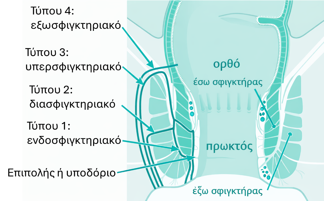 • το αν πρόκειται για απλό ή σύνθετο συρίγγιο